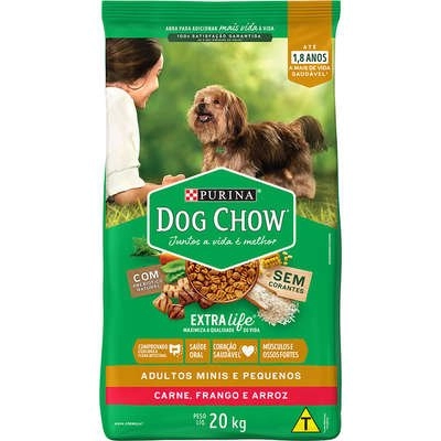 Voltar para a página inicial > Cachorros > Ração Seca Nestlé Purina Dog Chow Extra Life Cães Adultos Carne, Frango e Arroz Raças Mini e Pequenas 20kg