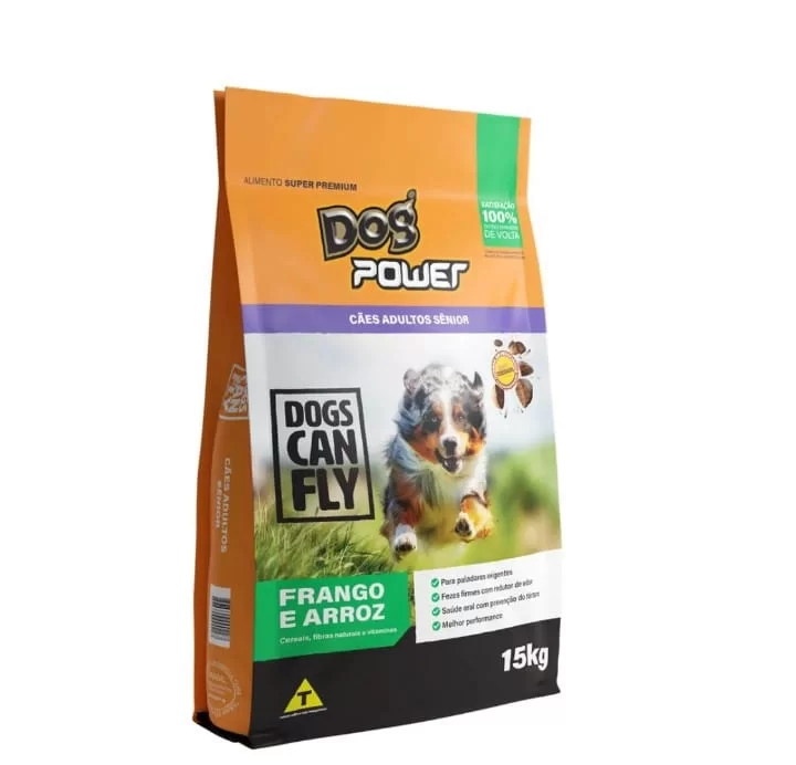 Ração Dog Power Dogs Can Fly Frango e Arroz Para Cães Adultos Sênior 15kgAvaliar