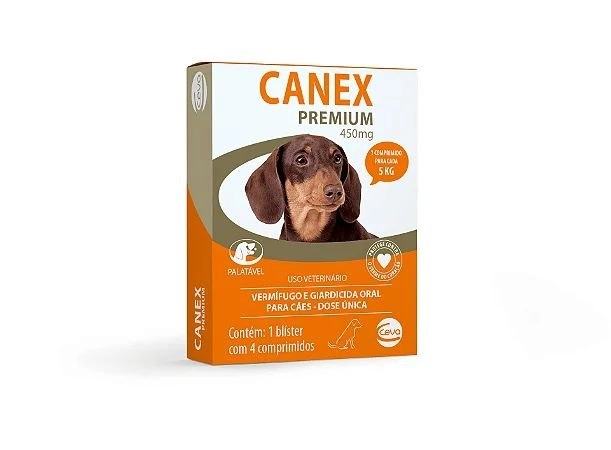 O Vermífugo Ceva Canex Premium 450 mg para Cães, é de amplo espectro, composto pela associação de ivermectina, pirantel, febantel e praziquantel. Indicado na prevenção e controle das infestações pelos estágios larvares de Dirofilaria immitis e no combate dos principais nematódeos (inclusive Trichuris vulpis), cestódeos e giardíase.