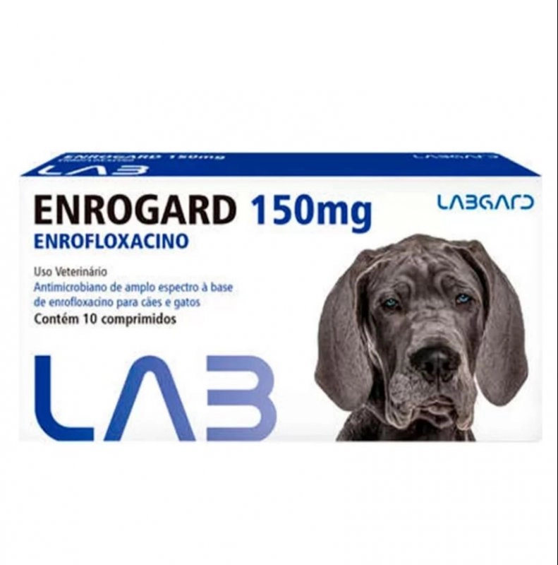O Antimicrobiano Labgard Enrogard 150 mg para Cães até 60 Kg é um bactericida oral para tratamento de infecções provocadas por bactérias Gram positivas e Gram negativas em cães e gatos.