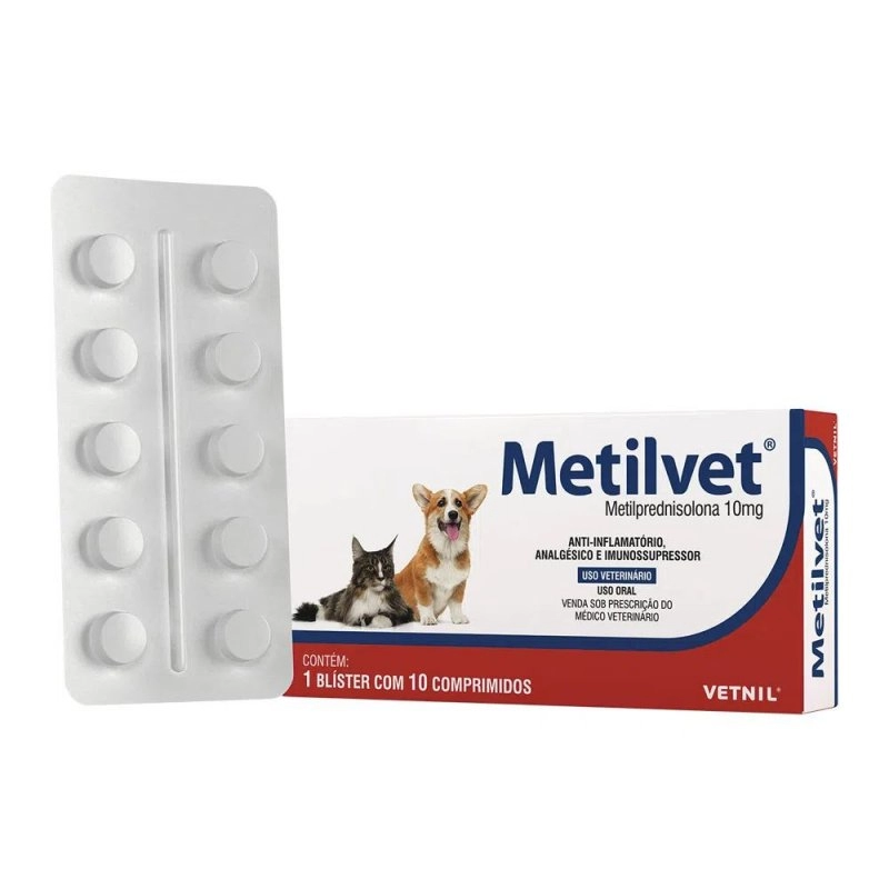 O Metilvet 10mg da Vetnil é o medicamento ideal para manter a saúde do seu cão ou gato em dia. Ele conta com ação anti-inflamatória, analgésica e imunossupressora que combate uma grande variedade de inflamações que afetam o corpo do seu animal de estimação.