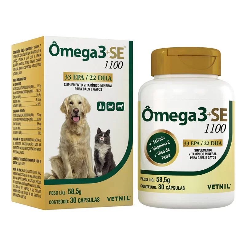 O Suplemento Vitamínico Vetnil Omega 3 + SE 1100 para Cães e Gatos foi desenvolvido para cães e gatos que necessitam de suplementação de ácidos graxos. Para isso você pode contar com o suplemento para recompor as vitaminas e nutrientes do seu amiguinho de quatro patas.