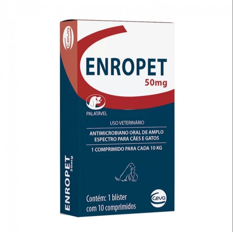 O Antibiótico Ceva Enropet 50 mg, é indicado no tratamento de infecções em cães e gatos causadas por bactérias Gram-positivas e Gram-negativas, espiroquetas e micoplasmas. Enropet é eficaz no tratamento das: enterites, infecções do trato respiratório, do aparelho geniturinário, dérmicas e otites.